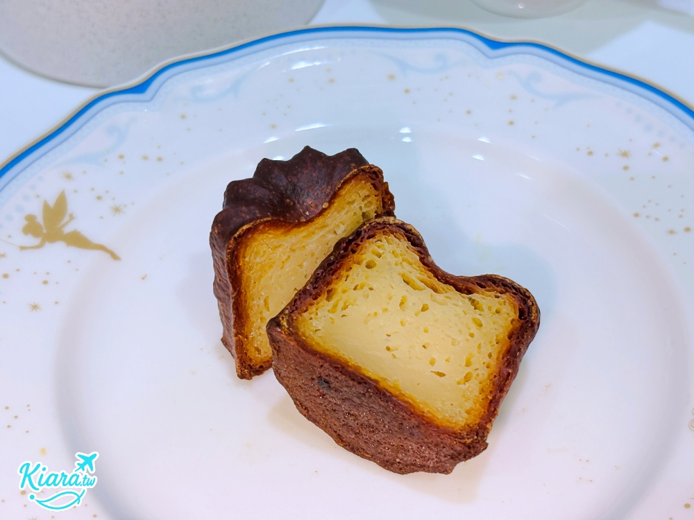 切開後的可麗露可以看到濕潤的氣孔結構,柔軟Q彈,外層焦化脆殼微微硬脆,我自己很喜歡,而且他一顆份量算是比較大顆的可麗露,用料很實在。