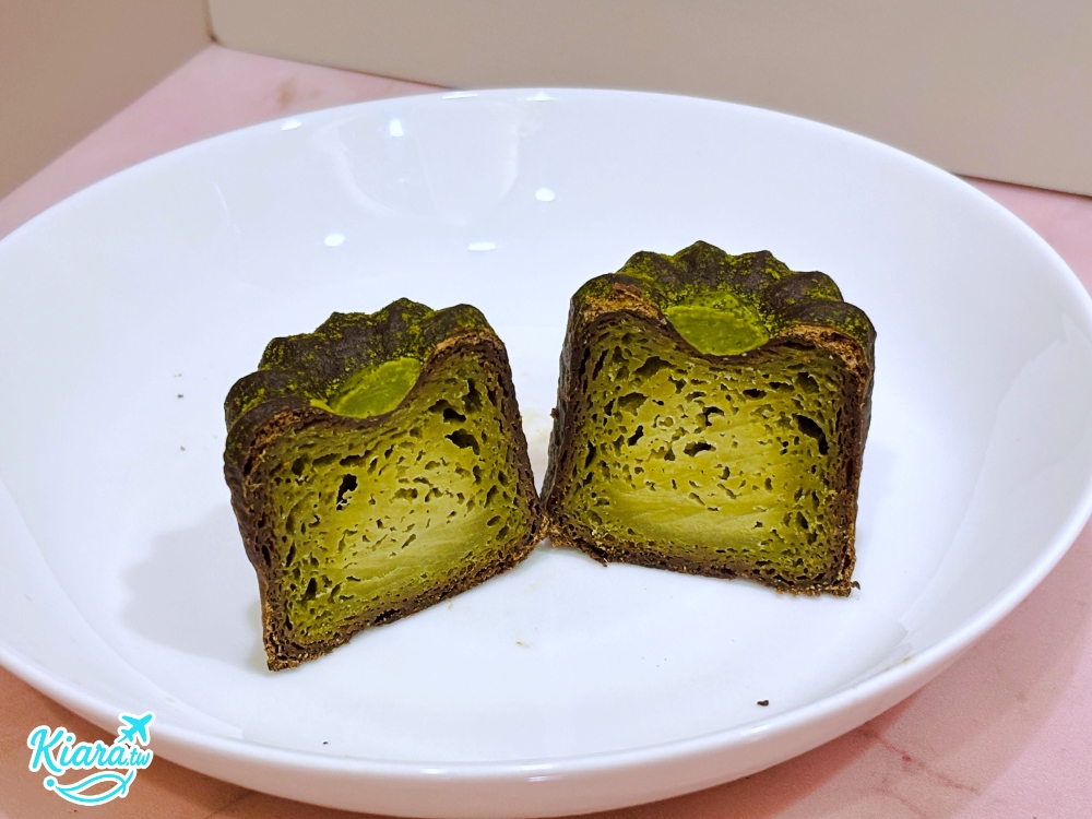 代表春天的抹茶可麗露,店家使用的是小山園抹茶粉,切開後的抹茶可麗露帶著我喜歡的抹茶色澤,抹茶味也很濃郁。