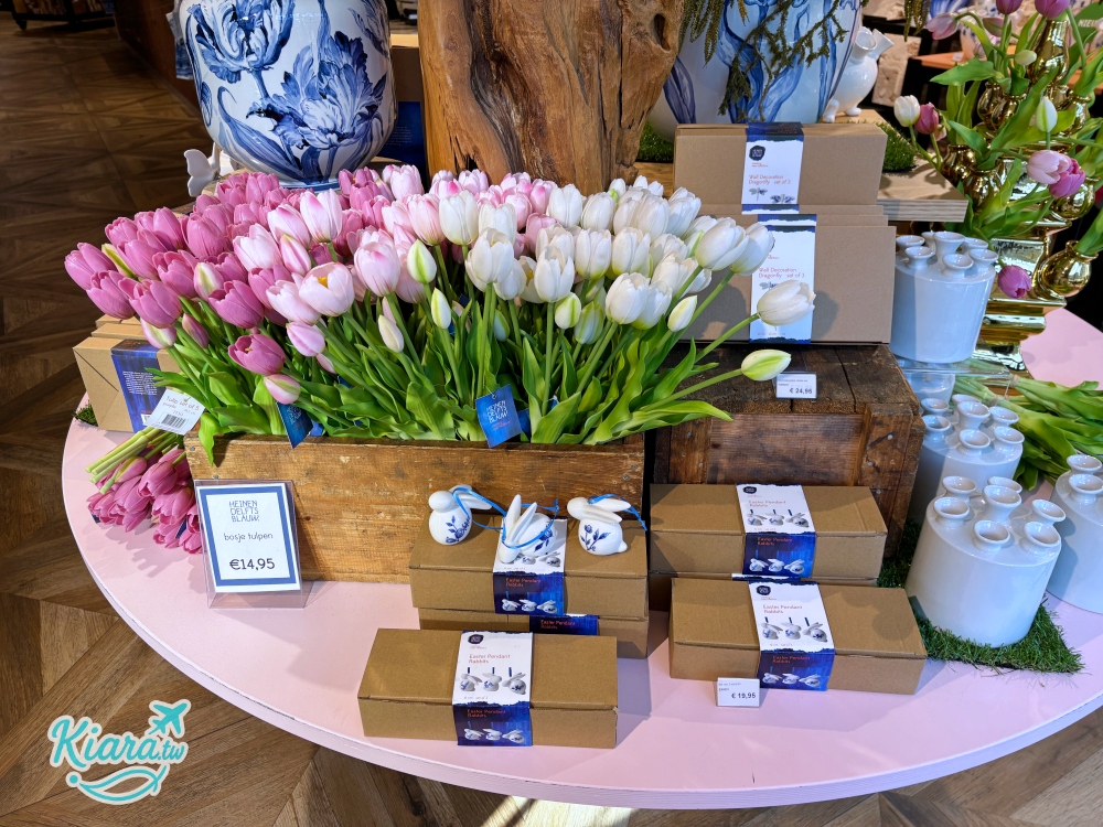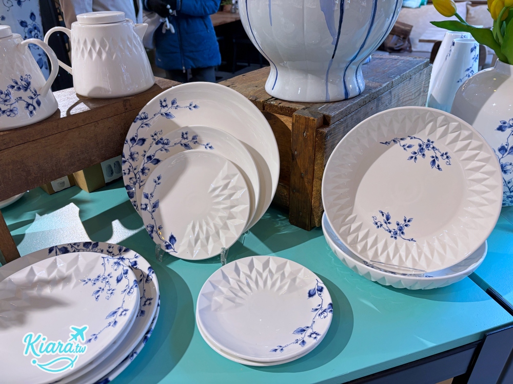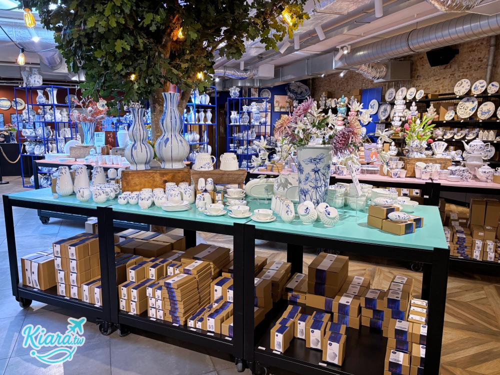如果沒有去皇家藍陶博物館的話,在台夫特(代爾夫特)的運河旁的這間店家也有販售不少藍瓷紀念品,這間藍陶知名品牌創立於1970年代,這間價格會更平價一些,從傳統的藍白陶器,到現代感十足的杯盤、花瓶、家飾,也是應有盡有,店家內旁邊還有一間麵包店,也有位置可以在室內用餐跟休息片刻。
