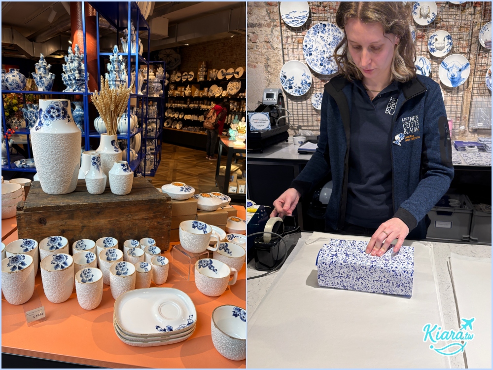 Royal Delft 成立於1653年,超過350年的藍陶品牌,是台夫特(代爾夫特)最具聲望的藍陶手工製作工廠,保留了 17 世紀的手工繪畫藍瓷技術。你可以看到師傅如何用藍釉手繪線條、製作瓷盤、花瓶與裝飾品,在這裡也可以買到不少藍瓷的寄念品,如果你沒有前往代爾夫特藍陶工廠,在台夫特小鎮的藍陶商店中也能買到。
